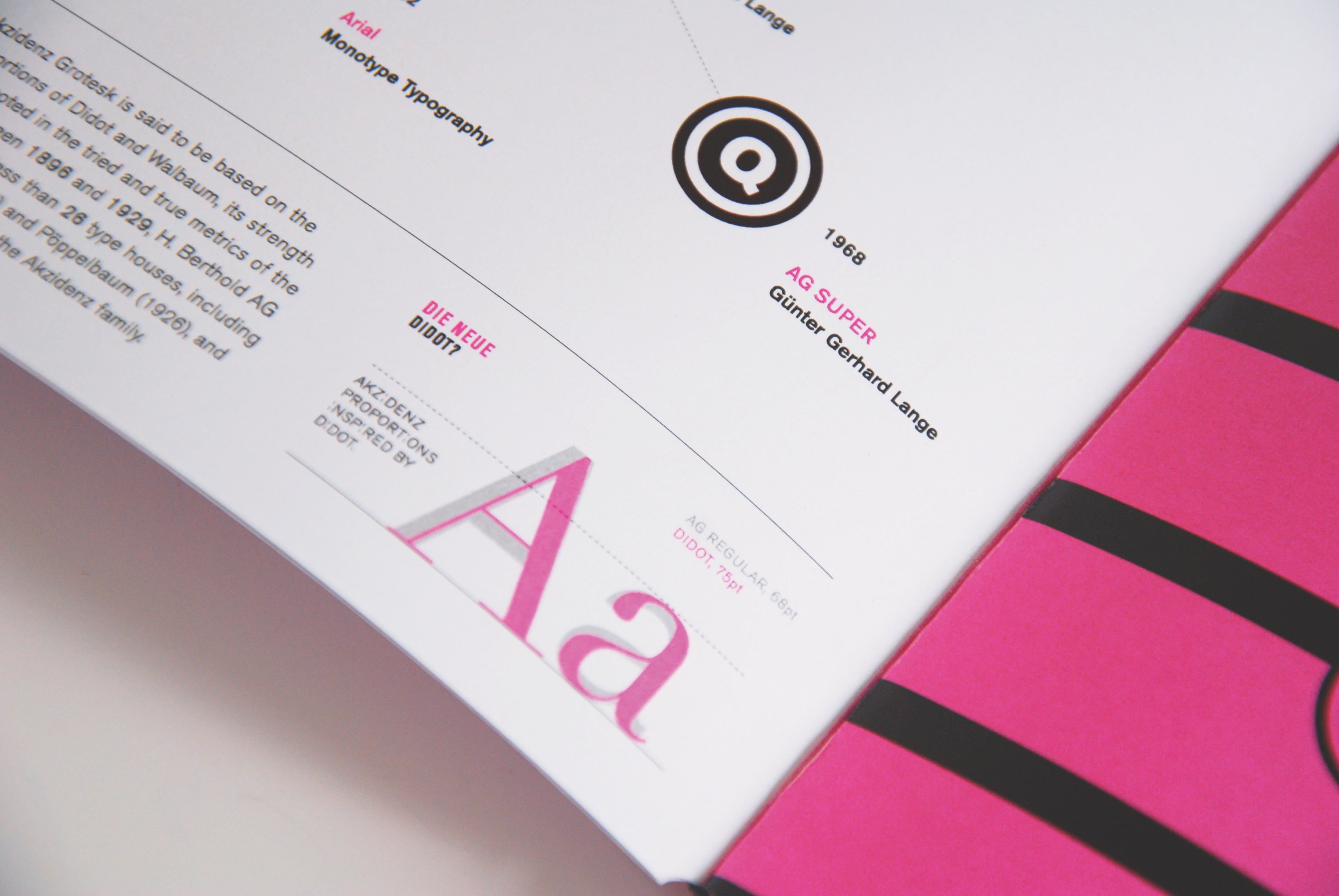 This brief was to design a specimen broadsheet and booklet for a nomimated typeface. Akzidenz Grotesk has a fascinating history, which is explored through copy and composition in the work.